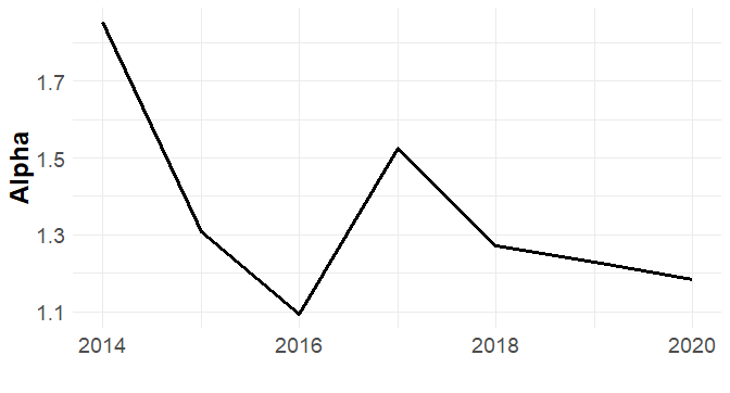alpha[i] <- stable_fit_koutrouvelis( coredata(btc[ year[i] ]),