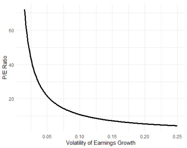 Or, the P/E ratio is simply the earnings growth rate discounted by the volatility of those earnings.